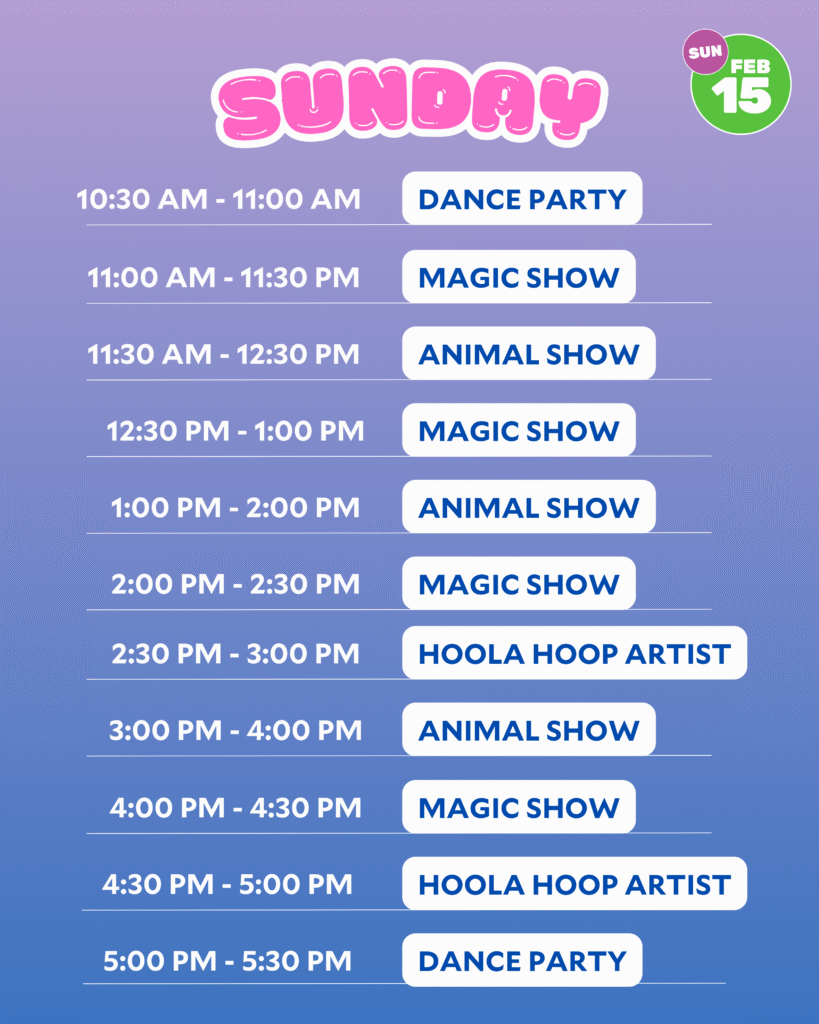 Three days of non-stop fun with over thirty themed inflatables, jumping castles, interactive games, slides, obstacle courses, and so much more! Get ready to laugh, play, and create unforgettable memories with live stage shows, pony rides, carnival games, prizes, delicious food, and surprises around every corner!